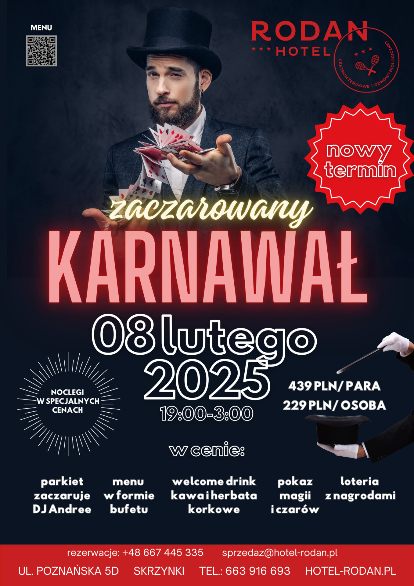 Przed nami najlepsza w 2025 roku impreza karnawałowa! Pozostajemy w klimacie czarów, tym razem racząc Państwa pokazem magii prowadzonym przez prawdziwego iluzjonistę!